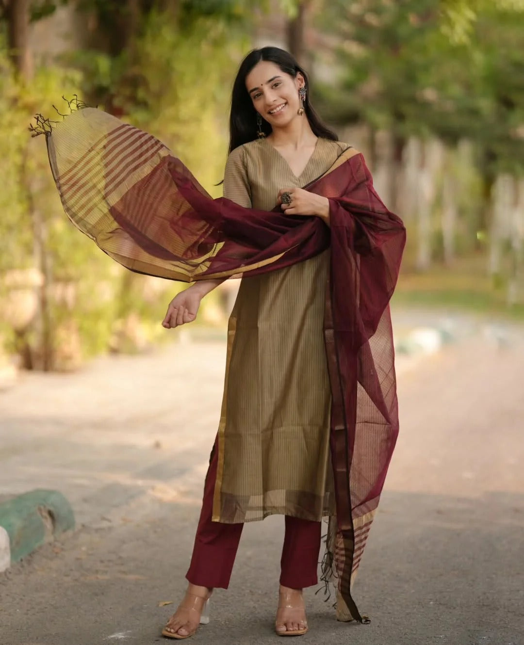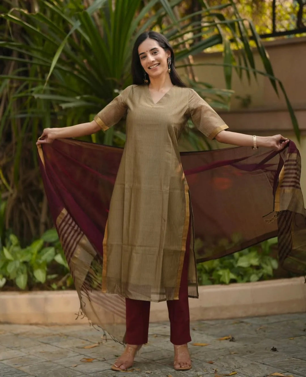 Elegance Woven Maheshwari Silk Suit Set