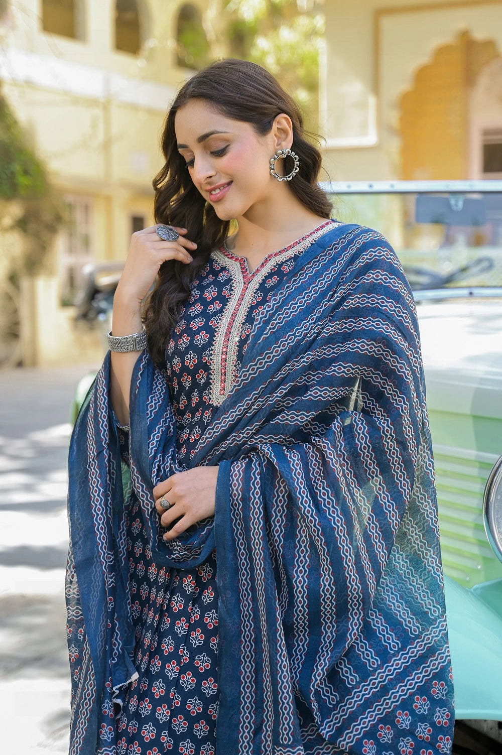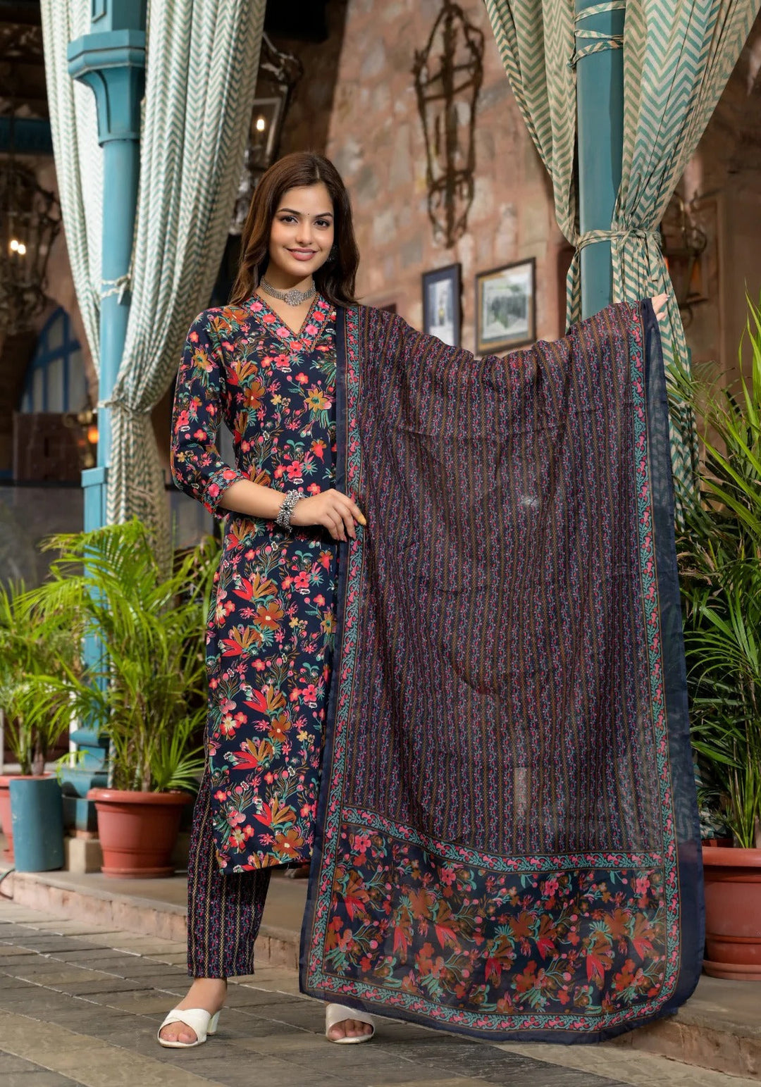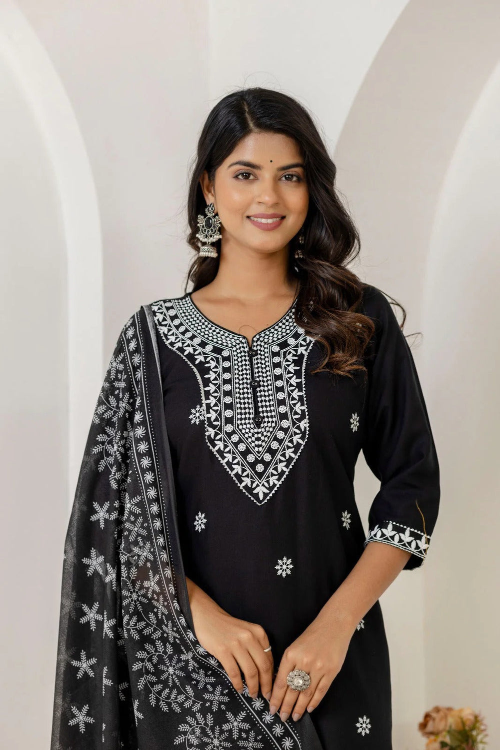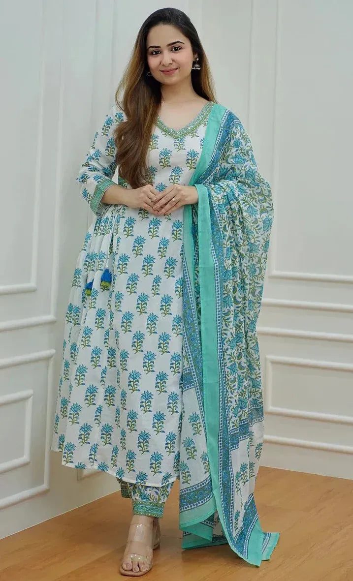 Pure Cotton Schiffli Kurta,Pant & Dupatta Set
