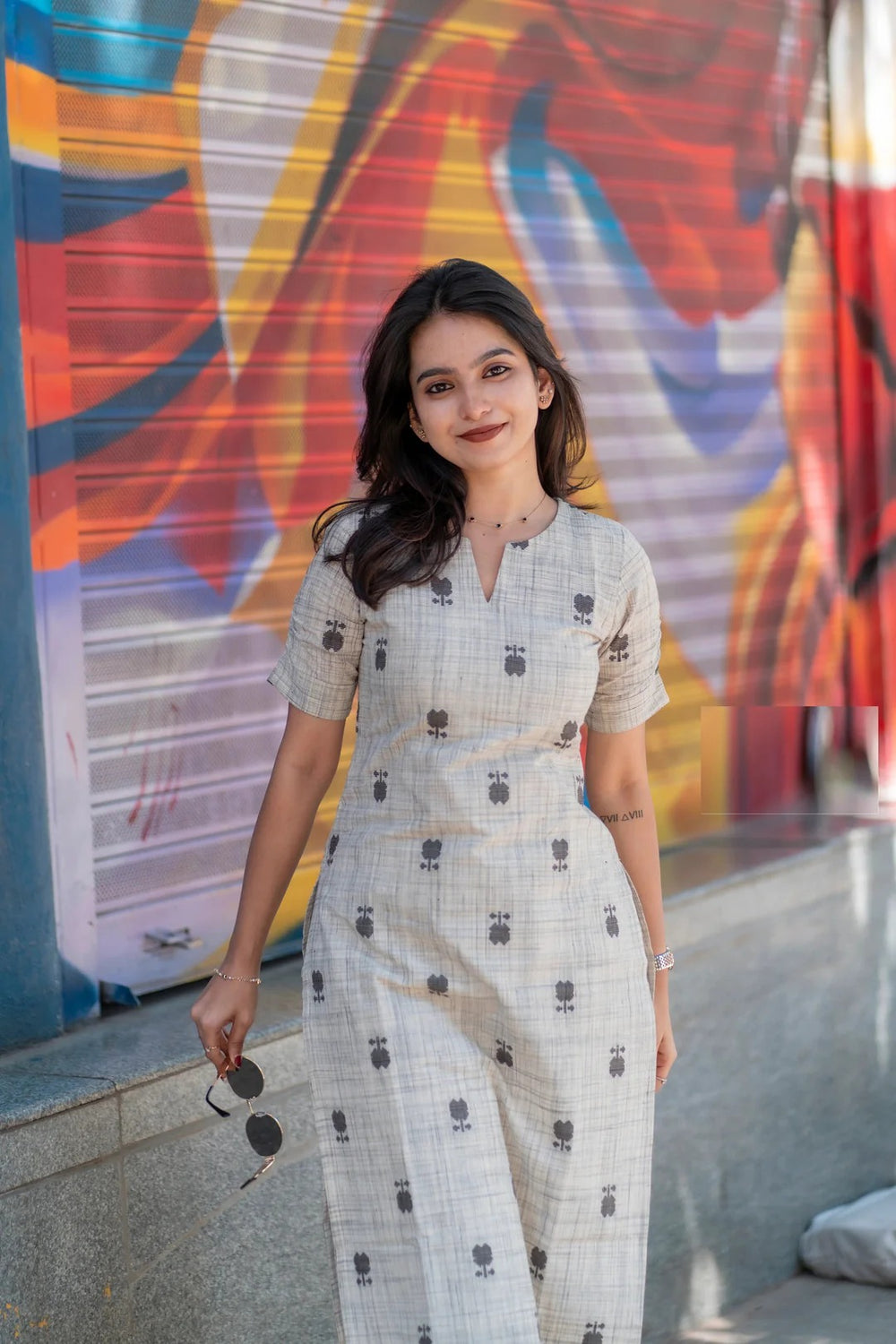 Mint Bloom Kurti Set – Raw Slub Silk Charm