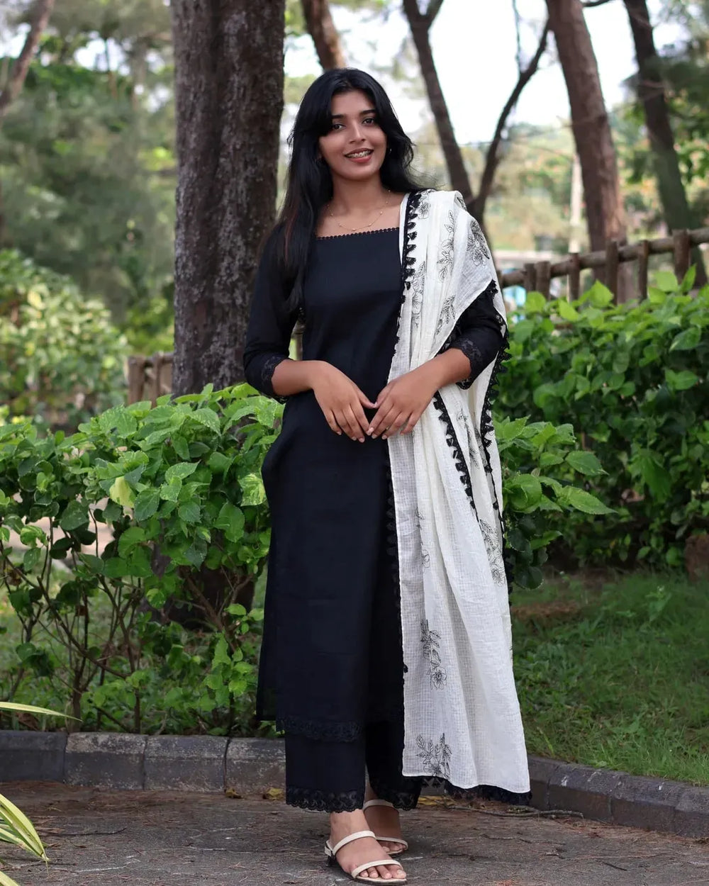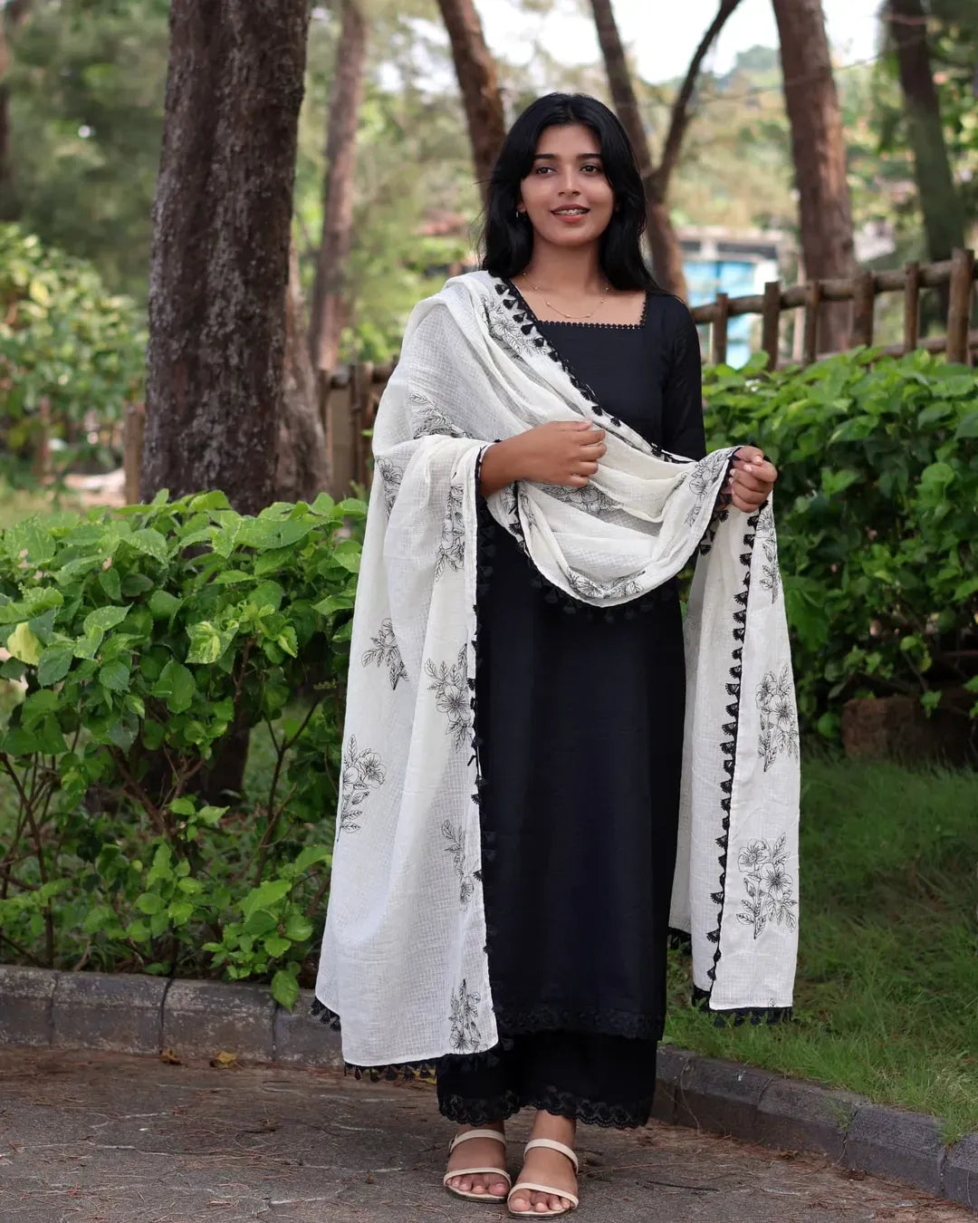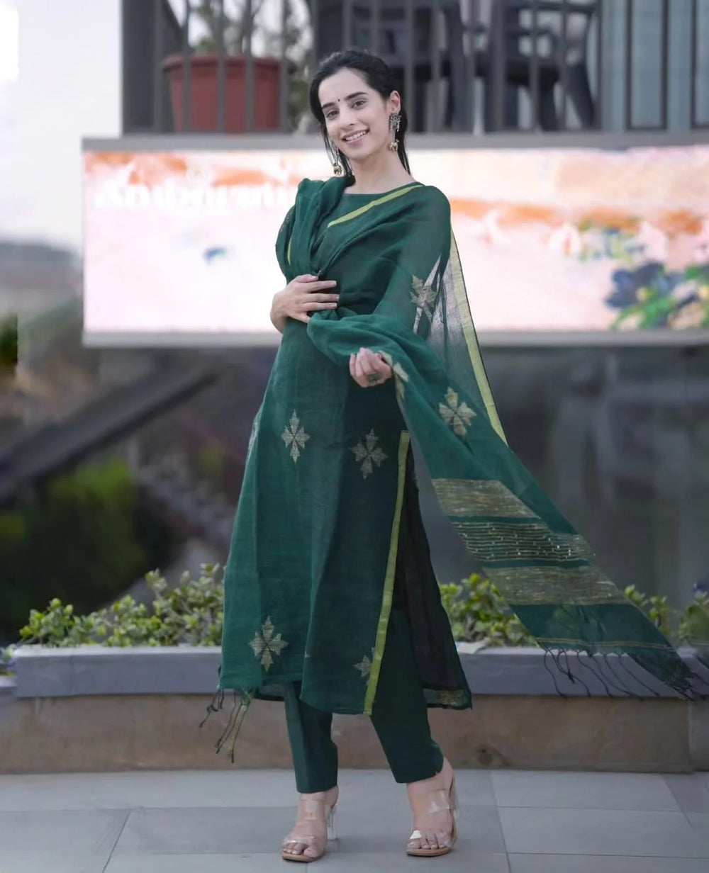 Jamdani Suit Set Paired With Soft Cotton Pants And Stunning Jamdani Dupatta